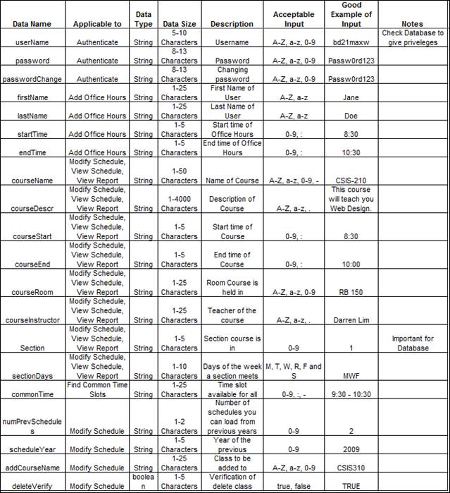 and password. Faculty can view all schedules submitted by the Course