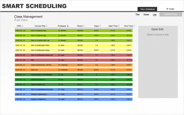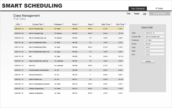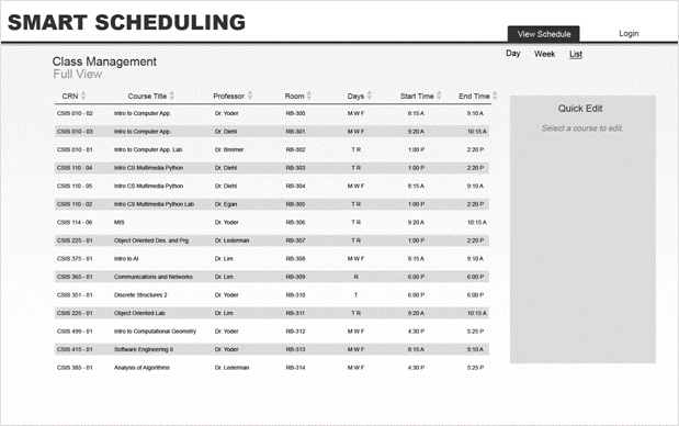 Scheduling software by being able to view current semester schedules to