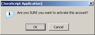 A message box is displayed confirming that the Admin wants to activate an account.  Account is activated
