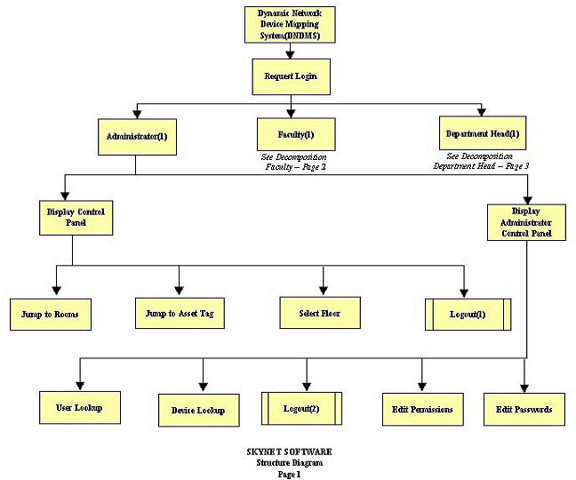 The Dynamic Network Device Mapping System (DNDMS) will allow our clients to retrieve information regarding components connected to the network through a web-based building map, so that physical location of the user is irrelevant. Our clients will be able to gather information regarding a specific network device; add, delete, and edit information about devices; and edit user permissions.